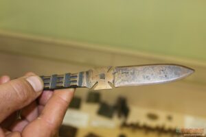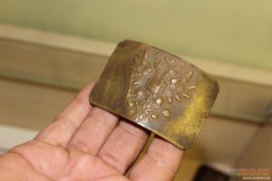 Один из наиболее интересных музейных предметов — полковой знак первой батареи седьмой Сибирской стрелковой артиллерийской бригады, найденный недалеко от агрогородка Луки. Среди редкостей также представлены ополченческий крест, который носили на фуражке, пряжка с ремня в форме двуглавого орла, нагрудный знак «За отличную стрельбу», мини-компас, простой карандаш в стреляной гильзе. Внимание привлекает металлический футляр для Библии.