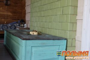 — Усё зроблена нашымі рукамі, — кажа Дзмітрый. — Акрамя печы, яна складзена з дзвюх. Атрымалася добрай. Цеплыню трымае два дні. І нам, і гасцям хочацца пасядзець, пагрэцца.