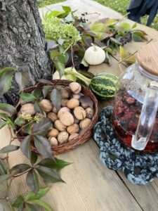 — Любая сядзіба — гэта хата і тэрыторыя вакол яе. Таму варта пачынаць знаёмства менавіта з двара, — кажа гаспадар. — Тут ёсць і невялікі агародчык, і бульба, расце рэмантантная маліна. Усяго на тэрыторыі 19 пладовых дрэў.