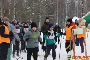 В этот субботний день на лыжи стали любители спорта разных лет, учащиеся школ, работники и руководители предприятий района, сотрудники районного исполнительного комитета.