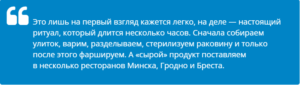 На ферме выстраивается очередь из желающих понаблюдать за жизнью улиток и попробовать деликатесы в панцире. На экзотику съезжаются семьи, школьные группы и туристические автобусы со всей страны. Такой наплыв Владимир объясняет разнообразием блюд: