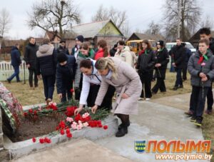 Да падножжа помніка ўскладзены вянкі і кветкі.