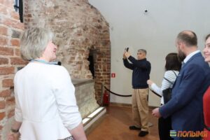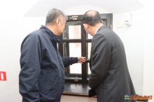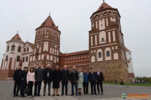 Для Чэнь Чжоу и членов делегации провели экскурсию по Мирскому замку и рассказали об оказываемой ему на государственном уровне поддержке. Его реставрация началась в 1980-х годах, замок восстановили буквально из руин.