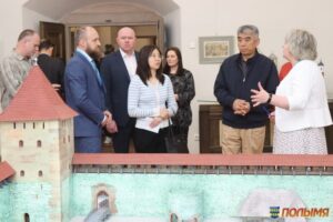 Для Чэнь Чжоу и членов делегации провели экскурсию по Мирскому замку и рассказали об оказываемой ему на государственном уровне поддержке. Его реставрация началась в 1980-х годах, замок восстановили буквально из руин.