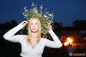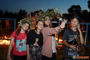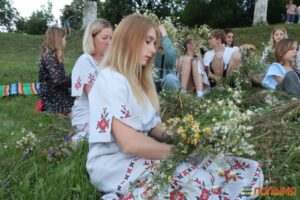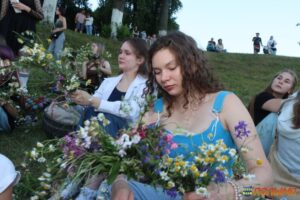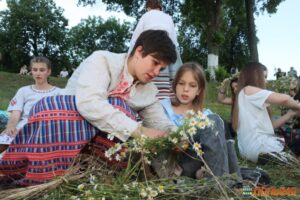 Между тем неподалеку девушки и даже парни учатся плести венки. Наши предки верили, что если в Купальскую ночь украсить голову венком из трав, то он даст жизненные силы.
