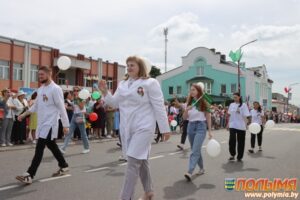 Адкрыла свята прэзентацыя-паказ спецтэхнікі прадпрыемстваў, арганізацый раёна, якая прайшла па вуліцах гарпасёлка. У святочнай калоне, упрыгожанай яркімі кампазіцыямі, прайшлі лепшыя работнікі прамысловых прадпрыемстваў, прадстаўнікі будаўнічай сферы, жыллёва-камунальнай гаспадаркі, сельгасарганізацый, абслугоўвання дарог, медыкі, педагогі, работнікі культуры, моладзь Карэліччыны. Усіх аб’яднала адна агульная радасць – свята краіны, у якой мы жывём, свабоднай і незалежнай.