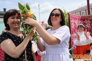 — На свята мы прыйшлі ўсёй сям’ёй і прымаем у ім самы непасрэдны ўдзел. Муж Дзмітрый Анатольевіч ахоўвае парадак, як работнік міліцыі. Я спявала ў народным ансамблі «Забава» і прымала ўдзел у шэсці калоны разам з работнікамі сектара культуры райвыканкама. Са мной і шасцігадовы сын Яўгеній.