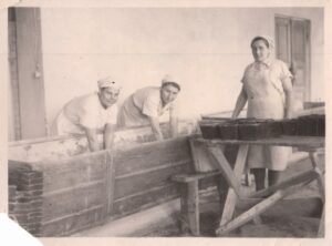 Пекарня в г. Мир начала работать осенью 1944 г. Там числились 2 рабочих и 2 служащих. В 1947 г. было построено новое здание пекарни, где выпекали 2,5 тоны хлеба в сутки.