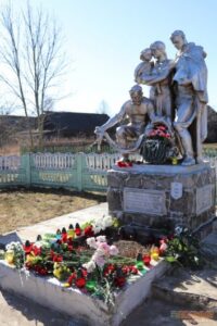 Переезд в д. Новое Село. Это сестра Хатыни. В 1959 г. в центре деревни установлен памятник в память о 256 жителях деревни, заживо сожженных от рук немецко-фашистских захватчиков.