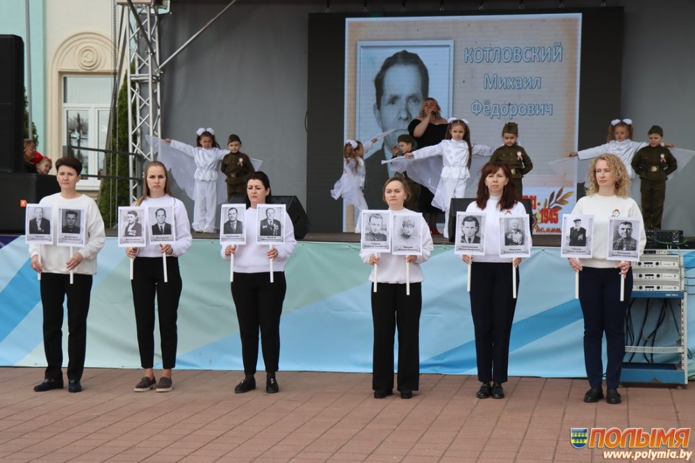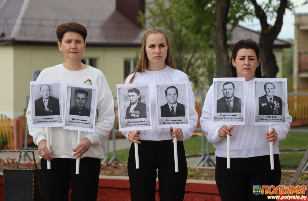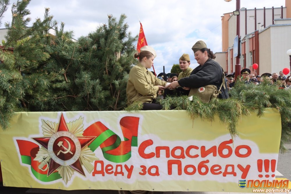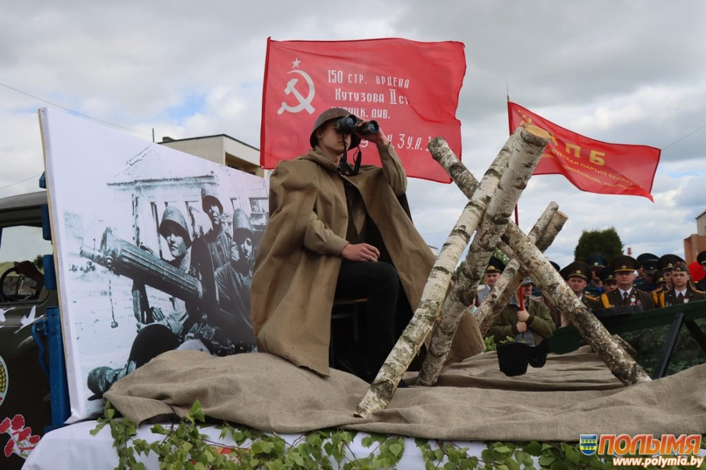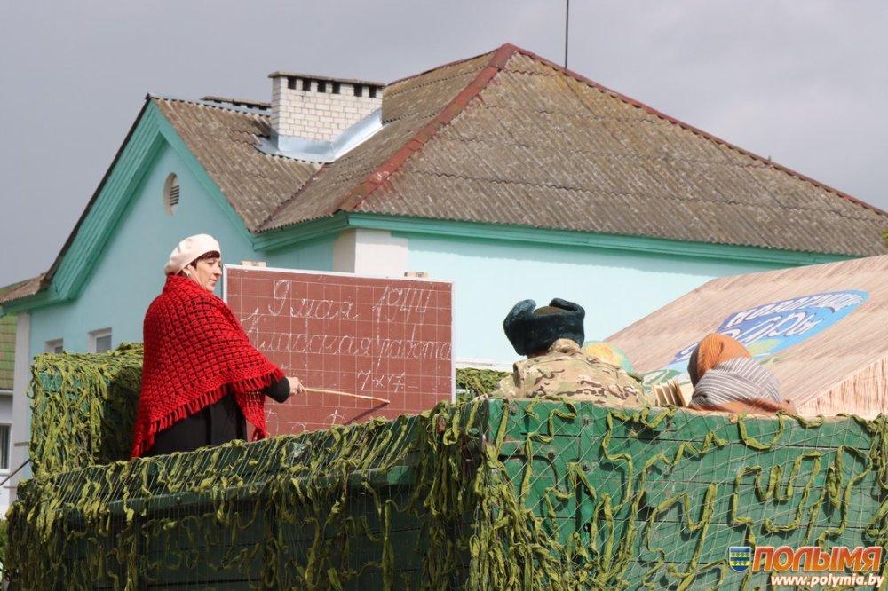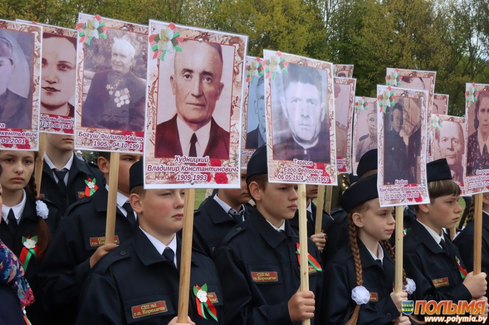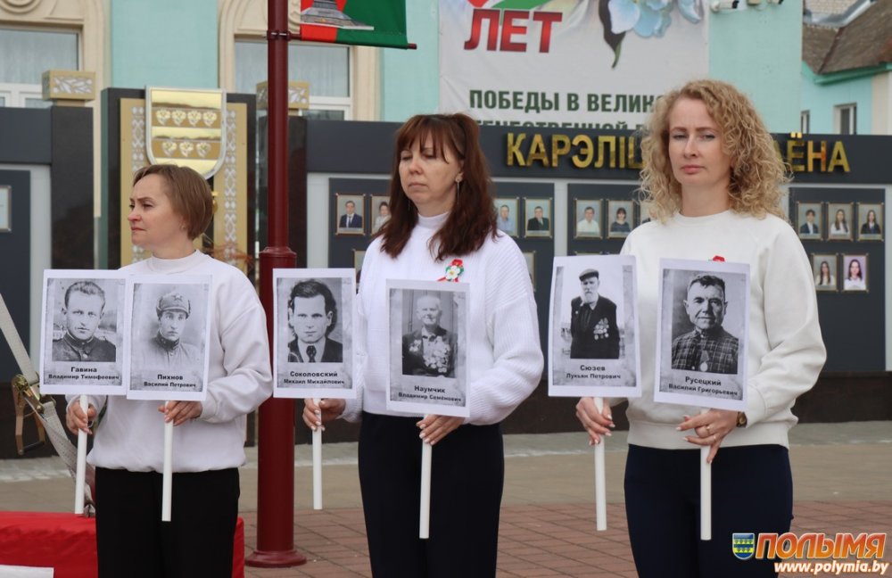 На галоўнай плошчы гарадскога пасёлка Карэлічы шматлюдна. Тут сабраліся кіраўніцтва раёна, прадстаўнікі працоўных калектываў, грамадскіх арганізацый, ветэраны працы, моладзь, госці. Іх увазе прадастаўляецца тэатралізаваны тэматычны аўтапарад «Старонкі памяці свяшчэннай».
