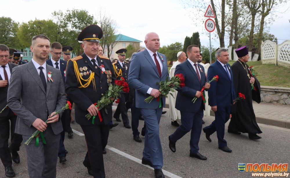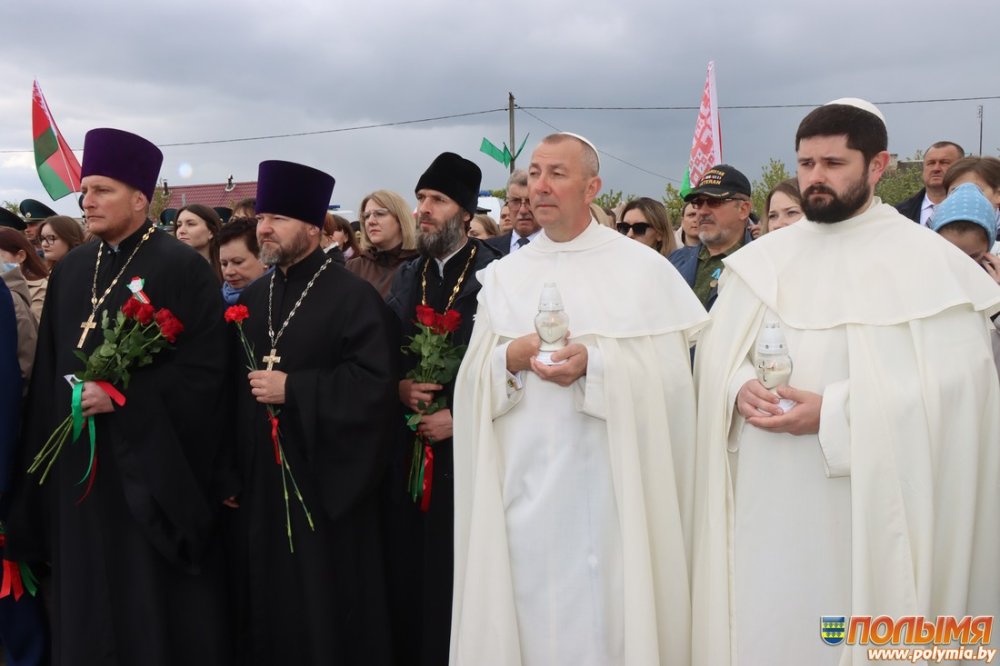 Каля мікрафона — настаяцель царквы першавярхоўных апосталаў Пятра і Паўла г.п. Карэлічы, іерэй Ігар Пірог. Напачатку прамовы святар адзначыў, што мы ўспамінаем тых людзей, пра якіх сказана ў Евангеліі: «Няма больш той любові, калі хто пакладзе жыццё сваё за сяброў сваіх». Нагадаў аб тым, што Мітрапаліт Сергій Страгародскі ў першы дзень вайны, звяртаючыся да сваіх верных чадаў, сказаў: «Гасподзь даруе нам Перамогу» — і Перамога была атрымана ў гэтай свяшчэннай вайне. Ігар Пірог пажадаў ўсім мірнага неба і здароўя, зазначыўшы, што вельмі важная памяць аб подзвігу салдат, але не меншы важная і малітвенная памяць.