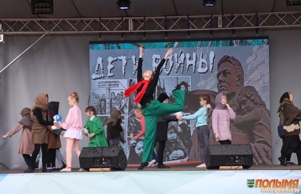 Тут праводзіцца тэтралізаваны мітынг-памяць «Памятаць, каб жыццё прадаўжалася!»