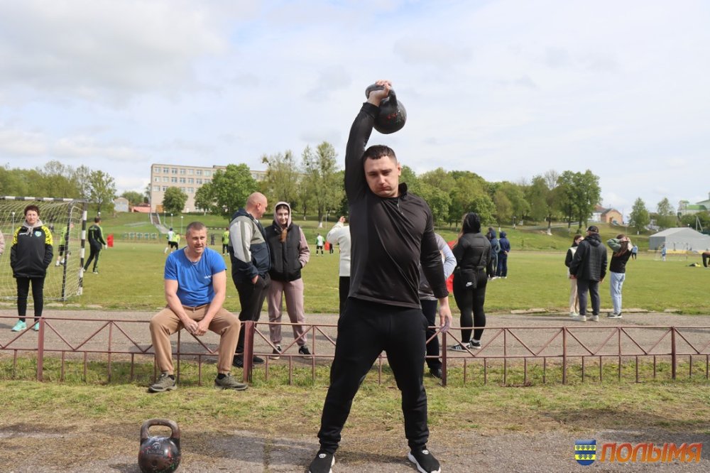 Мастер международного класса по гиревому спорту Николай Барило продемонстрировал на празднике один из своих лучших результатов: за 10 минут в рывке поднял 24-килограмовую гирю 240 раз. Рассказывает, что в этом виде спорта с 15 лет. Его крестным отцом, как и многих других тяжелоатлетов района, стал тренер Святослав Леонтьевич Полуян.