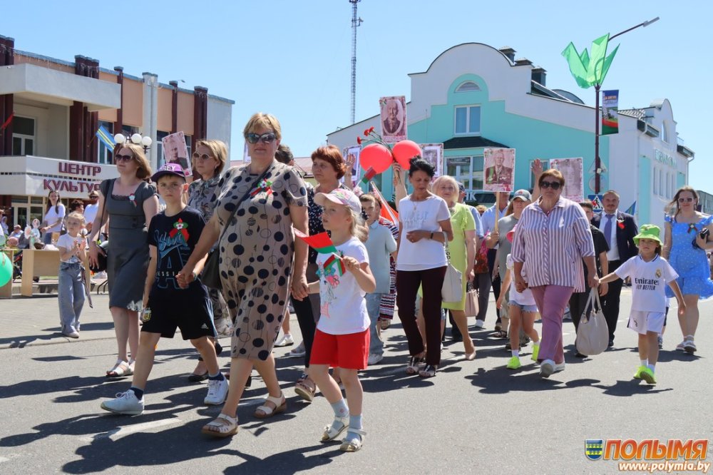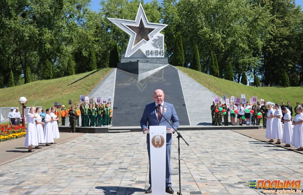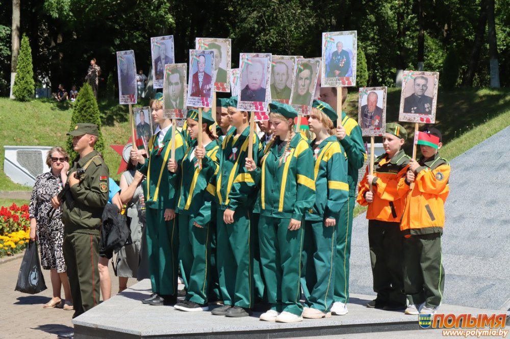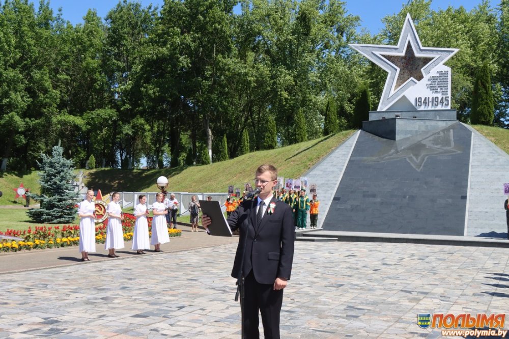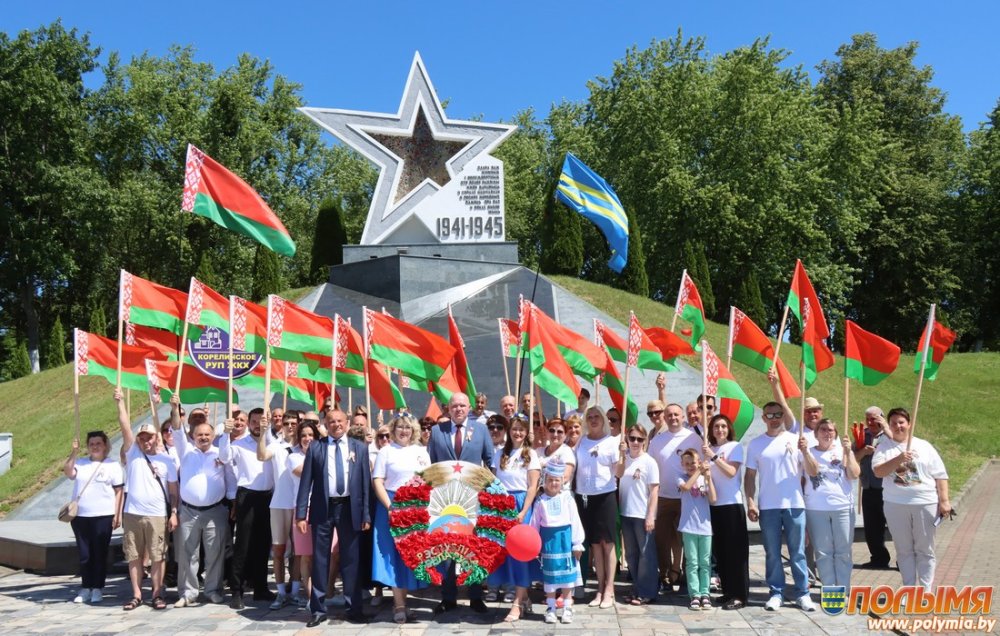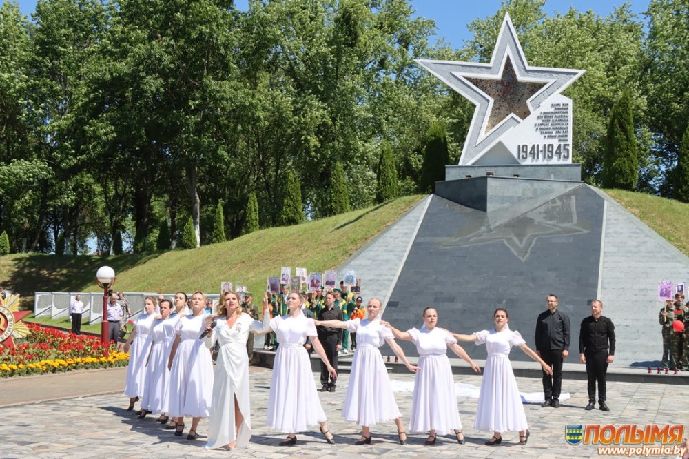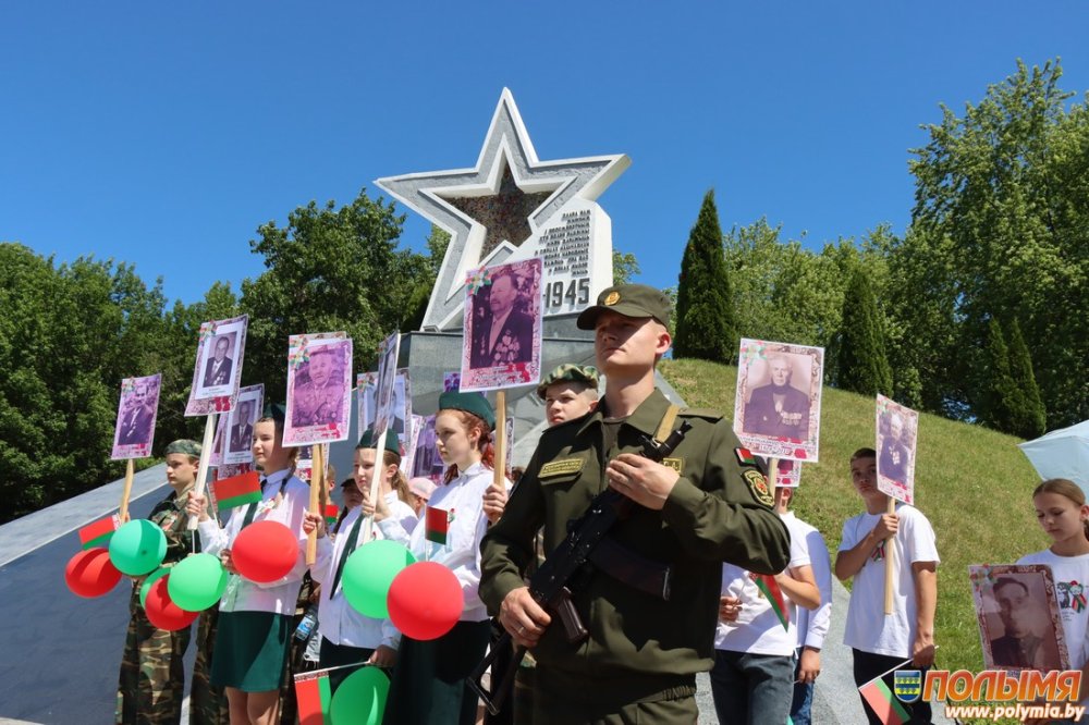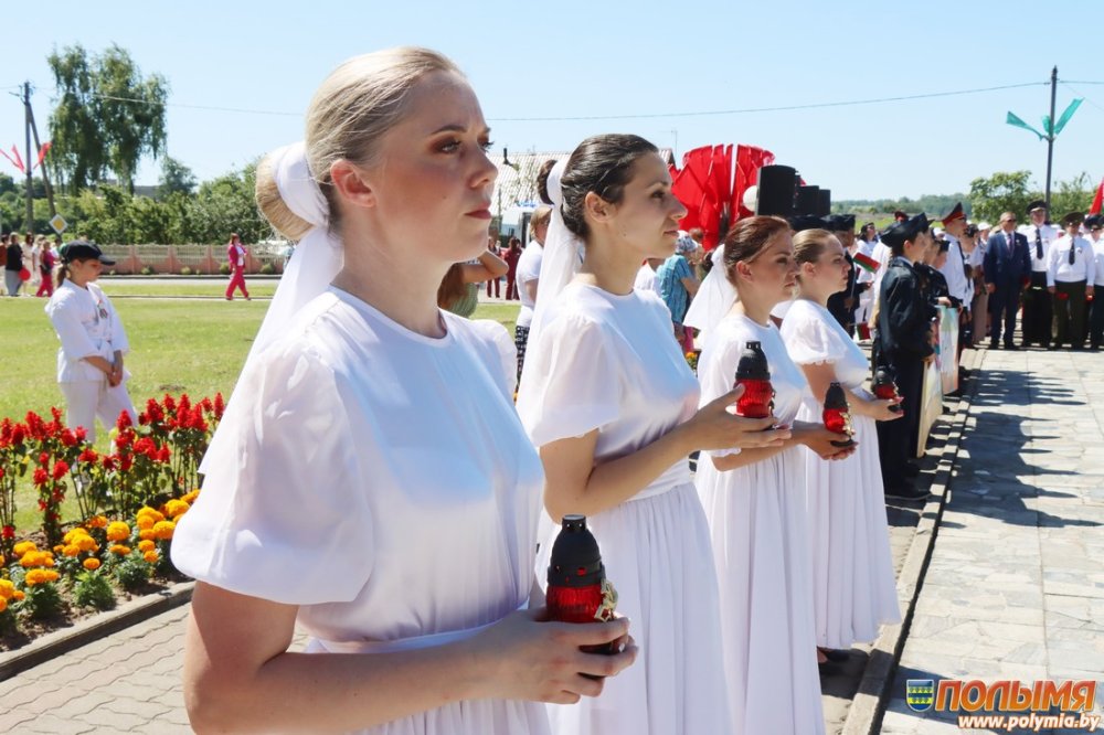 Затым урачыста ўпрыгожаная калона накіравалася да мемарыяльнага комплексу “Зорка”, дзе адбыўся мітынг-памяць “Памяць у сэрцы захоўваем!”.