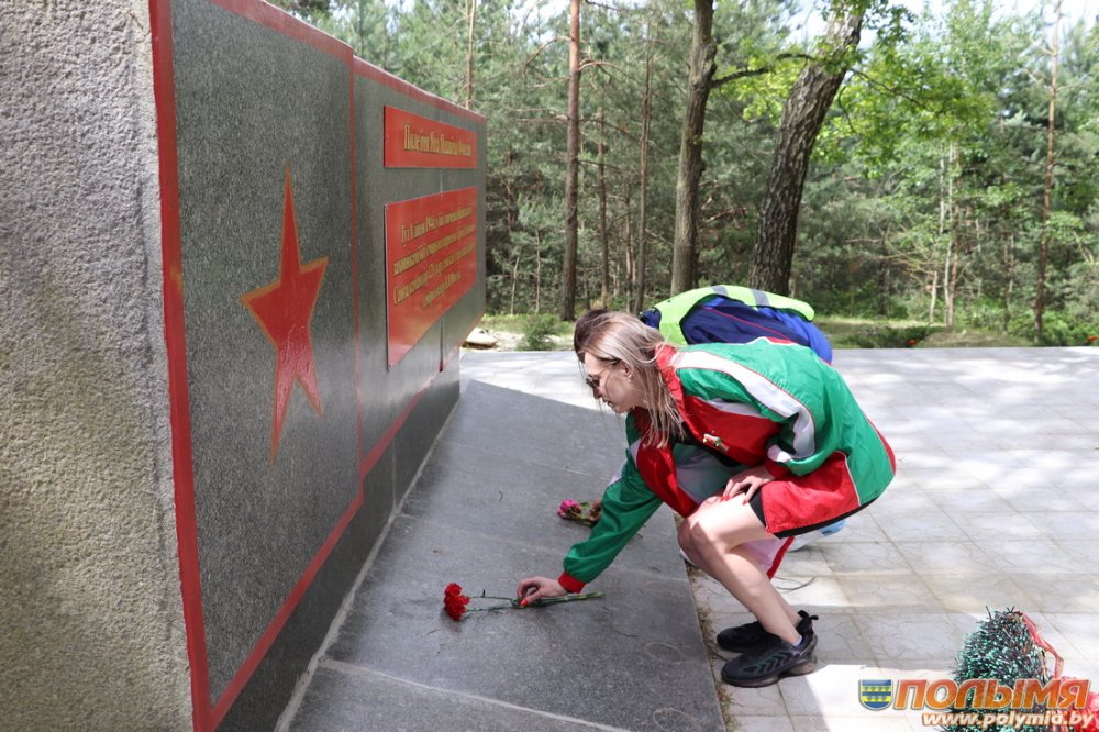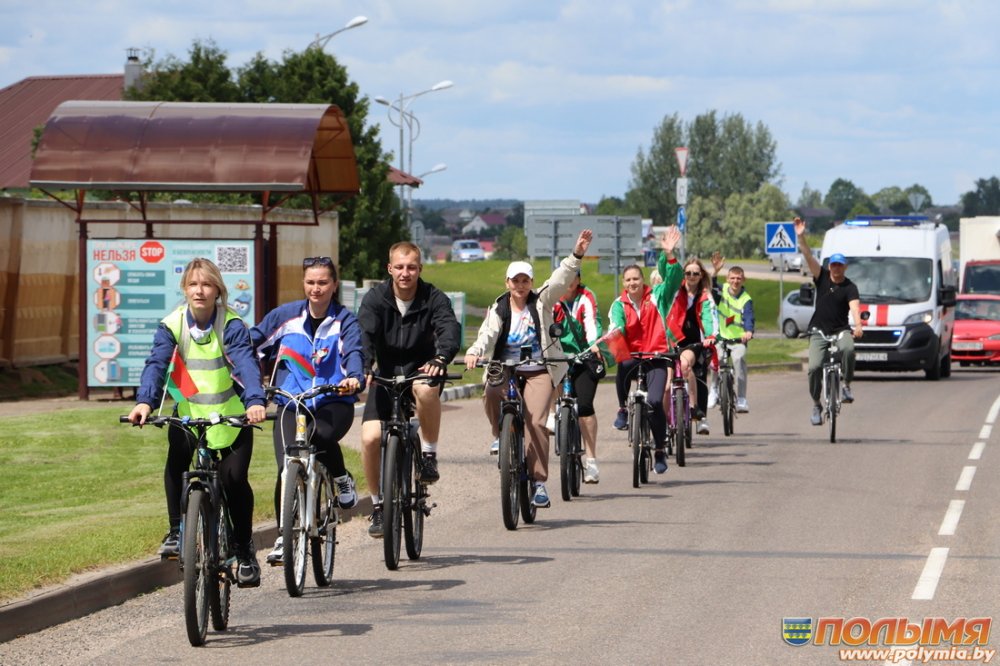 Працоўная моладзь, прадстаўнікі аддзела адукацыі, спорту і турызму райвыканкама, фізкультурна-спартыўнага клуба, сектара культуры райвыканкама, РК ГА “БРСМ”  з атрыбутыкай у руках праехаліся па гарпасёлку, накіраваліся да помніка загінулым у аргагарадку Палужжа, адтуль калонна веласіпедыстаў паехала да поля Яна Фогеля. Удзельнікі велапрабегу аддалі даніну павагі загінулым у гады Вялікай Айчыннай вайны савецкім воінам, дзякуючы якім мы сёння жывем пад мірным небам і ў квітнеючай краіне. Паклапаціліся арганізатары і пра бяспеку шляху. Калону веласіпедыстаў па маршруце руху суправаджаў экіпаж ДАІ, за ўдзельнікамі прабегу –   аўтамабіль брыгады хуткай медыцынскай дапамогі.