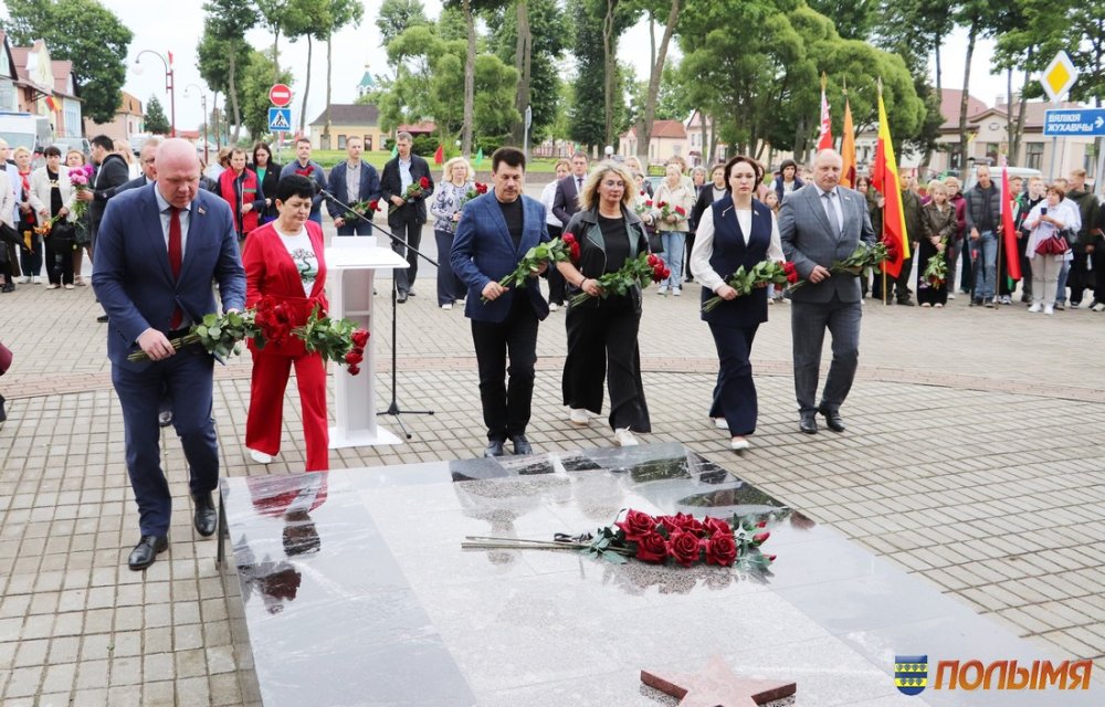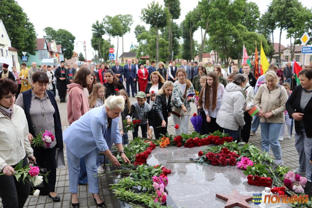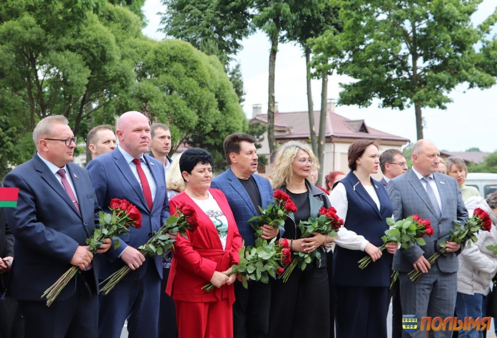 После визита в колледж участники мероприятия приняли участие в митинге, почтили память героев минутой молчания и возложили цветы к Братской могиле в г.п. Мир.