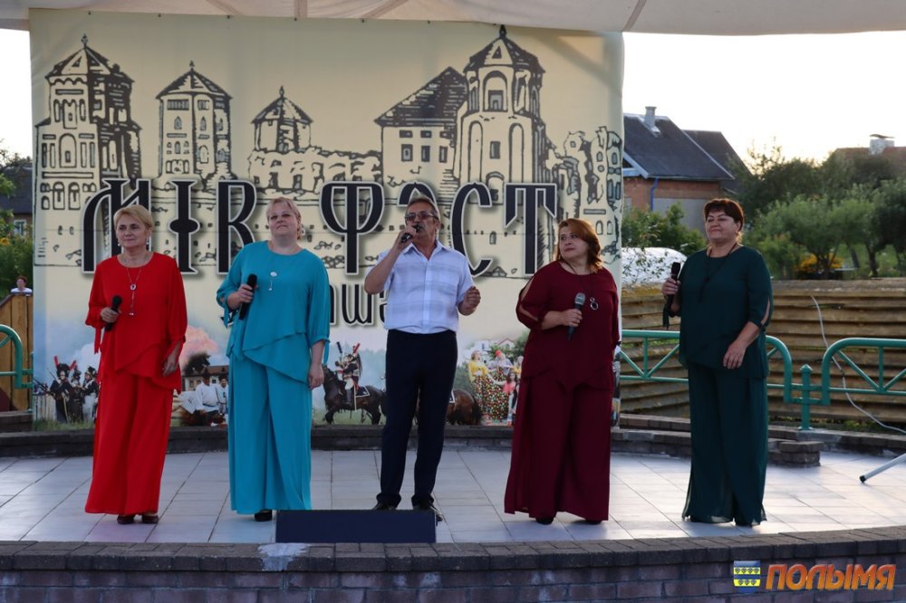 Торжественные фанфары мгновенно собрали у амфитеатра зрителей. Ведущие Ирина Бондарева и Алексей Тананко поприветствовали гостей и предоставили слово исполняющему обязанности председателя Мирского сельисполкома Сергею Сенкевичу, который объявил о начале Mir-феста.