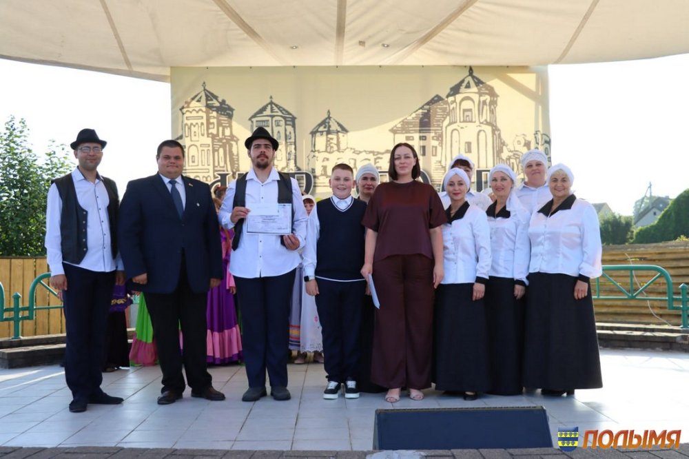 Пришло время для награждения. На сцену пригласили начальника сектора культуры Кореличского райисполкома Наталью Шпаковскую и исполняющего обязанности председателя Мирского сельисполкома Сергея Сенкевича. Наталья Леонидовна поблагодарила всех участников феста за хорошую работу и вручила Дипломы и денежные вознаграждения.