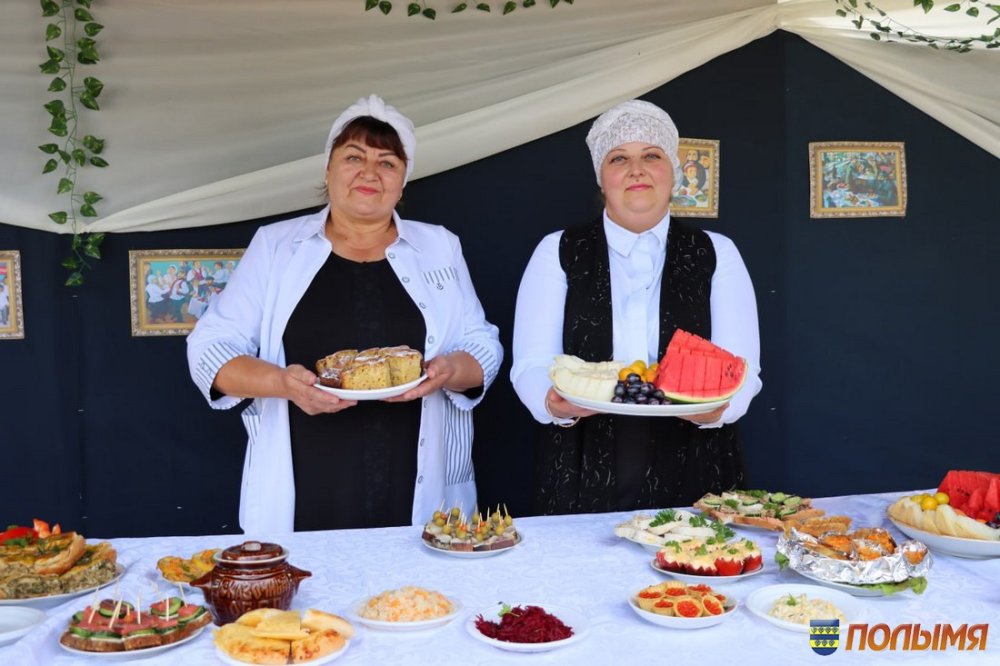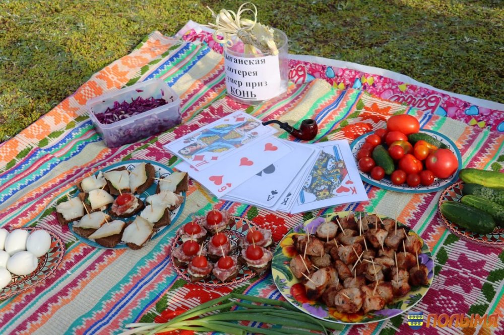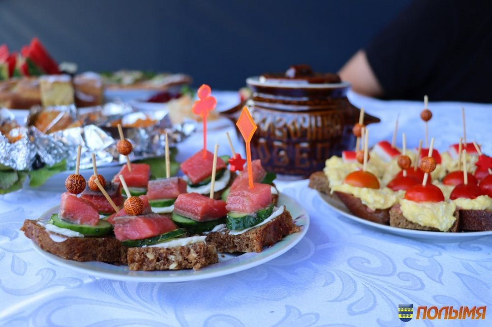 — Подходите, угощайтесь, — приглашает белоруска. – У нас тут все свое: хлеб, драники, холодник, суп грибной с мясом, бабка, сало, огурчики малосольные – всего не перечесть. Готовили с душой.