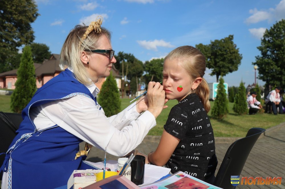 В городе мастеров создает красоту еще один мастер Светлана Рахманько – наносит аквагрим на лица юных гостей праздника.