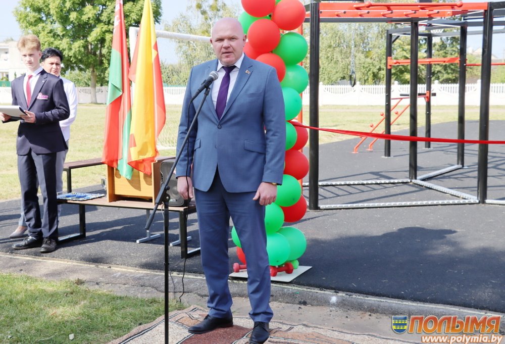 С приветственным словом к присутствующим обратился Андрей Гордей. Он поздравил всех с началом нового учебного года, пожелал первоклассникам усидчивости, знаний и понимания со стороны родителей. Глава района подчеркнул, что по просьбе учащихся, руководства школы при поддержке Президентского спортивного клуба было принято решение именно в средней школе имени А.И. Сташевской установить данную площадку, чтобы ребята в свободное время могли ее посещать и приобщаться к спорту.