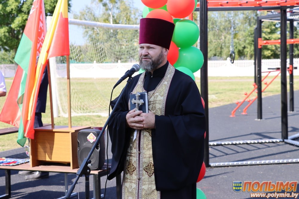 Фёдор Лукашевич поздравил всех с началом нового учебного года, вручил подарок школе и по доброй традиции освятил новую воркаут-площадку.
